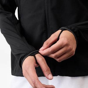 Internal thumbholes hold sleeves in place
